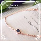 サファイヤ一粒石のゴールドブレスレット。9月誕生石。ご希望の長さにカットします。【金属アレルギーの方に配慮したニッケルフリー加工】