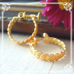 シンプルながらも凝った三つ編み細工が印象的なフープイヤリング【金属アレルギーの方に配慮したニッケルフリー加工】