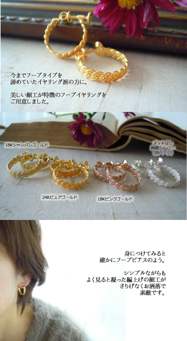 【フープイヤリング】シンプルながらも凝った三つ編み細工が印象的なフープイヤリング・ゴールド【ニッケルフリー・ゴールド】K24K/K18K