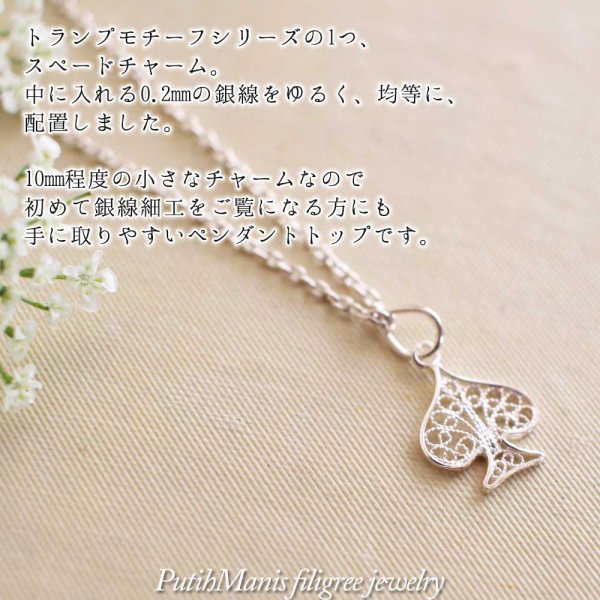 トランプのスペードの銀線細工チャーム・シルバーネックレス|透かし細工のトランプモチーフ【silver925】 [ch10-si-n]