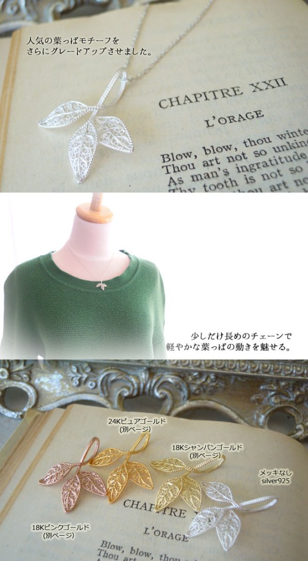 葉っぱ3枚のネックレス|銀線細工で葉脈の細部までこだわったチャーム【silver925】