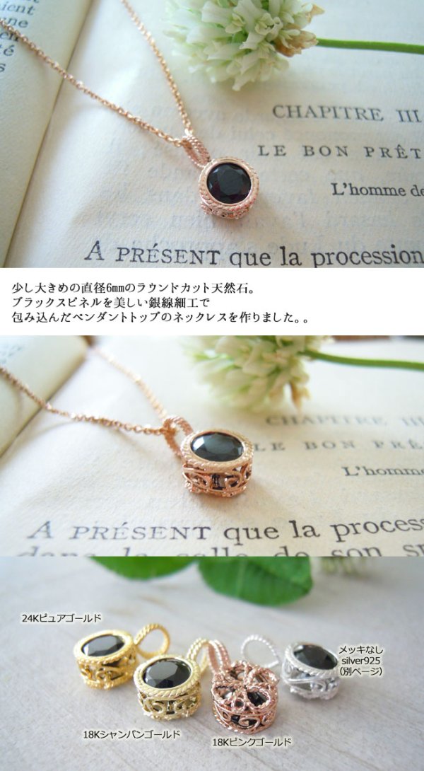 ▼大きさ:(モチーフ部分)ブラックスピネル直径6mm(約0.8ct) ペンダントトップ全体7.5mm