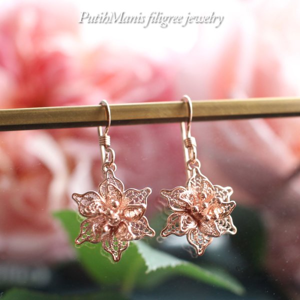 ジャスミンの花のドロップピアス【金属アレルギー】ニッケルフリー*日本の職人による最高級ゴールド加工。 [p-ch42-g]