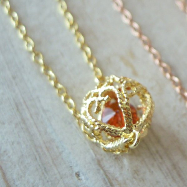 ハートレースのボールチャームのネックレス|カラフルキュービックジルコニアが透けて見えるチャーム【金属アレルギーの方に配慮したニッケルフリー加工】 [fil28batu-g-n]