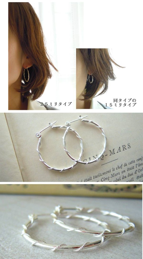 プレーンに極細銀線を巻きつけた細工が美しい25mmフープピアス(silver925)