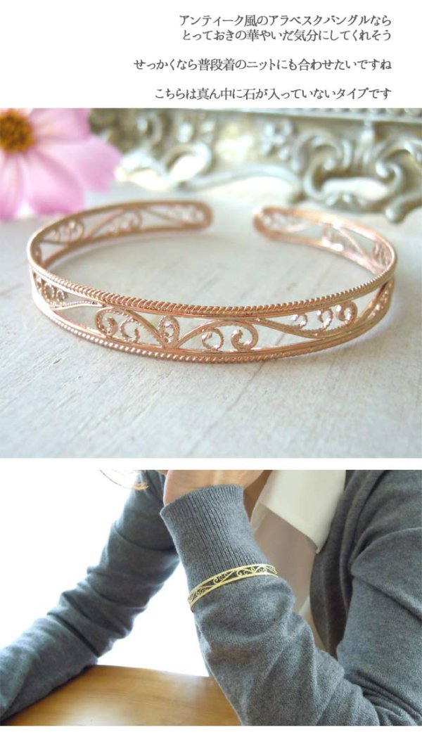 【バングル】アンティーク風細めのアラベスクバングル(ゴールド)K24K/K18K【金属アレルギーの方に配慮したニッケルフリー加工】